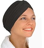 Comfy black turban which covers all around including the hairline. Great for patients with hairloss. Great For Hair Loss Comfortable Fit One Size Fits All Easy To Wear Turbans Cover All The Hair From Front To Back