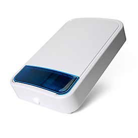 This outdoor siren is fully wireless and is designed for installation in areas in which wiring action is difficult or impossible. The siren is powered by an external 9VAC adapter and non-rechargeable backup battery, enabling very a long operation time wit